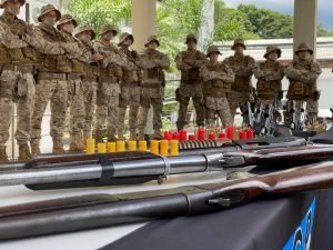 Ao todo, foram apreendidas três espingardas, cinco pistolas, dois revólveres, diversas munições, rádios comunicadores, emulsões encartuchadas e celulares. “Os explosivos, que não podem ser transportados, foram detonados no local pelo Batalhão de Operações Especiais”, explicou o subcomandante geral da Polícia Militar. “Nós já temos muitas informações, incluindo sobre a qualificação dos indivíduos e os antecedentes deles”, completou. O caso será apurado pelo Grupo de Investigações de Homicídios (GIH) de Trindade.