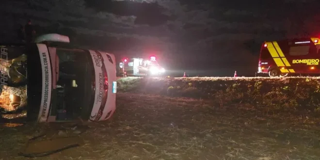 De acordo com informações da Polícia Rodoviária Federal (PRF), o ônibus saiu de Goiânia e tinha como destino a cidade de Miracema, no Tocantins. Por volta de meia-noite, no km 218 da BR-153, o veículo saiu da pista e tombou.