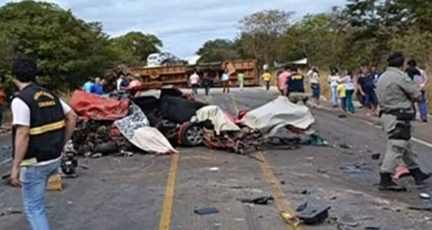 Três pessoas morreram e duas ficaram feridas em um acidente na BR-153, entre o distrito de Jardim Paulista e Rialma, no Vale do São Patrício, em Goiás. De acordo com a Polícia Rodoviária Federal (PRF), o motorista do carro de passeio tentou ultrapassar três caminhões em uma área de curva, mas teria invadido a pista contrária e batido de frente contra uma carreta carregada com bagaço de cana.