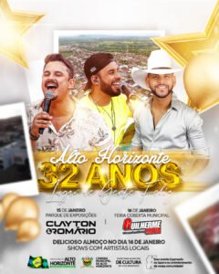 Anota aí na sua agenda, nosso encontro é dia 15 de janeiro com show da dupla Clayton e Romario no Parque de Exposições Agropecuário, e no dia 16 de janeiro, acontece o tradicional almoço ao som de Guilherme Silva na Feira Coberta Municipal.