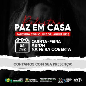 Convidamos a comunidade Altohorizontina para participar de uma roda de conversa com o juiz de direto Dr. André Reis, que abordará diversos assuntos e situações sobre violência no ambiente doméstico.