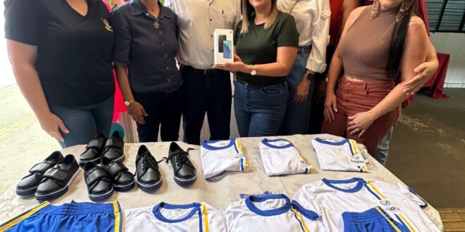 O prefeito Azarias Machado (Machadinho), ao lado da secretária municipal de Educação, Eunice Aparecida Faria, realizou nesta quarta-feira (15/10) a entrega de uniformes completos aos alunos da Escola Municipal Professora Lastênia Fernandes de Carvalho. A ação faz parte do cronograma de distribuição que contempla todos os estudantes da rede municipal de ensino de Uruaçu.