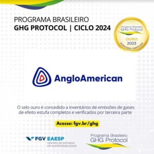 A Anglo American foi novamente reconhecida por seu compromisso com a transparência e confiabilidade. A empresa recebeu, na quarta-feira (21), em solenidade realizada na Fundação Getúlio Vargas (FGV), em São Paulo (SP), o Selo Ouro do Programa Brasileiro GHG Protocol (PBGHG). A certificação mais alta do programa é concedida a empresas que atendam a critérios como relevância, transparência e exatidão nas informações públicas anuais de seus inventários completos de gases de efeito estufa (GEE), verificados por empresa certificadora.