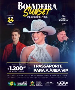 É só juntar o montante de R$1.200 reais em notas fiscais de compras realizadas no comercio local e procurar a Secretaria Municipal de Cultura no Parque de Exposições para trocar por um passaporte da AREA VIP OPEN BAR. Lembrando que o passaporte é nominal e intransferível.