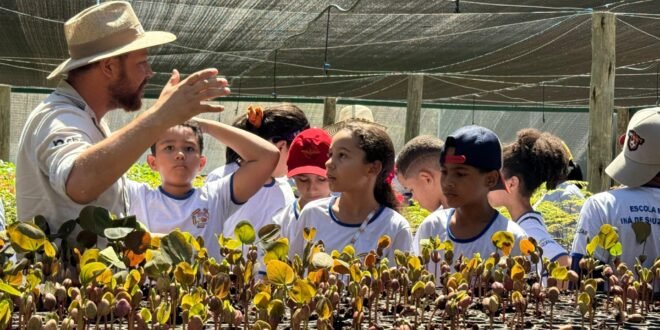 A conservação da savana mais biodiversa do mundo tem contado com um importante aliado no Norte Goiano: o Programa Portas Abertas do Legado Verdes do Cerrado, primeira Reserva Privada de Desenvolvimento Sustentável de Goiás, localizada em Niquelândia, de propriedade da CBA – Companhia Brasileira de Alumínio. A edição 2024 do programa encerrou neste dia 30 de outubro, com a visita de quase 30 crianças niquelandeses da Escola Municipal Padre Valentim Rodrigues. O balanço de três anos do programa mostra que a Reserva já recebeu mais de 400 crianças para “aulas a céu aberto” com o objetivo de proporcionar e ampliar o conhecimento sobre o Cerrado.