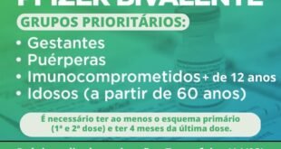 Vacina Bivalente é ampliada gestantes e puérperas. Agora os grupos prioritários são: Gestantes; Puérperas; Pessoas com mais de 60 anos; Pessoas imunocomprometidas acima de 12 anos e Indígenas acima de 12 anos. É necessário ter ao menos o esquema primário (1ª e 2ª dose) e ter 4 meses da última dose. Público-alvo que já tomou a 3ª e a 4ª dose …