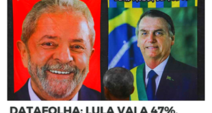 Leia mais »Datafolha: Lula vai a 47%, abre 14 pontos sobre Bolsonaro e amplia chance de vencer no 1º turno