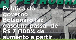 Leia mais »Política do governo Bolsonaro faz gasolina passar de R$ 7 (100% de aumento a partir de 2015)