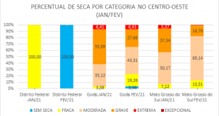 Em fevereiro a seca deixou de ser registrada no DF. Em Goiás aconteceu o recuo da área com o fenômeno acompanhado pela diminuição de sua severidade. Em Mato Grosso do Sul a seca teve um abrandamento, mas se manteve em 100% do estado A última atualização do Monitor de Seca aponta que no Centro-Oeste houve, em fevereiro, o recuo da seca grave …