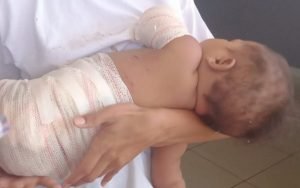 A família da bebê de 6 meses atingida por um fogo de artifício arremessado por um cliente que não quis usar máscara no bar da avó da neném está assustada com o crime, em Uruaçu. A criança teve queimadura no bumbum, nas costas e braço. Um suspeito foi preso por tentativa de homicídio.
