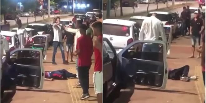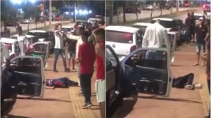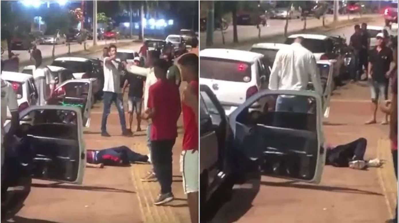 A confusão aconteceu na noite de sexta-feira (25), próximo a uma distribuidora de bebidas. Pelo vídeo, feito por uma testemunha, é possível ver o major com uma camisa branca batendo e também apanhando. Em um trecho da gravação, ele atira contra as pessoas e dá chutes em um homem que estava deitado no chão.