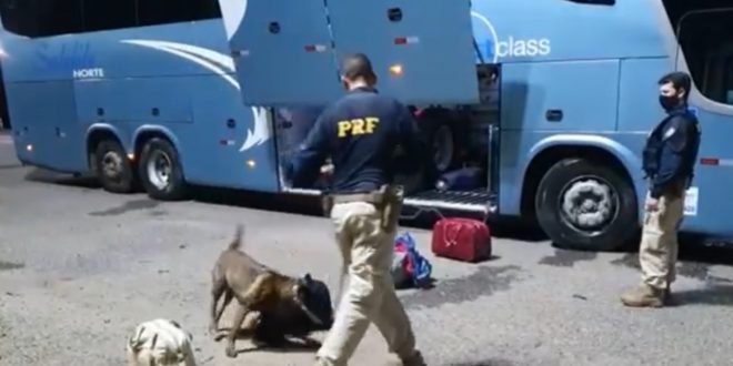 Durante a fiscalização de transporte coletivo de passageiros, os policiais, que contavam com a ajuda de cães farejadores, encontraram a droga em uma mala que estava no bagageiro. A mala foi localizada com a ajuda da cadela K9 Fiona que, durante trabalho operacional de faro, sinalizou a bagagem onde que estava escondida a droga.