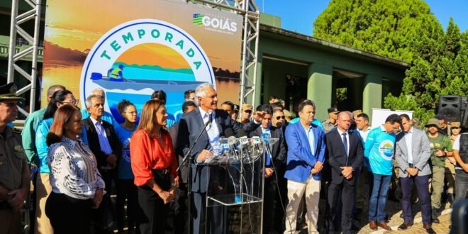 “A melhor e a maior de todos os tempos”, definiu o governador Ronaldo Caiado no lançamento da temporada Mais Araguaia 2023, que tem estimativa de receber cerca de 1 milhão de visitantes nos meses de junho e julho. Durante coletiva realizada no Palácio das Esmeraldas, em Goiânia, o governador apresentou as ações promovidas pelo Governo de Goiás que incentivam o turismo responsável, qualificação profissional, geração de emprego, atendimento ao turista, além de incluir reforço na fiscalização ambiental.
