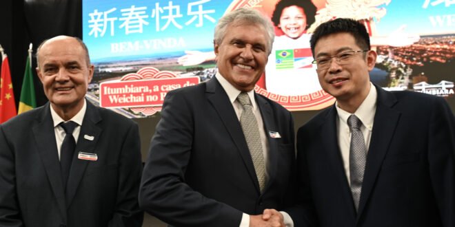 A gigante chinesa WeiChai Holding Group, líder mundial na fabricação de motores e máquinas agrícolas, iniciou o processo de instalação de sua primeira unidade na América Latina, em Itumbiara, na região Sul de Goiás. O governador Ronaldo Caiado oficializou a chegada da multinacional nesta quinta-feira (08/02), após liderar uma série de negociações desde setembro de 2023. A indústria é a primeira de um total de seis grandes empresas do país asiático que devem se estabelecer no estado.
