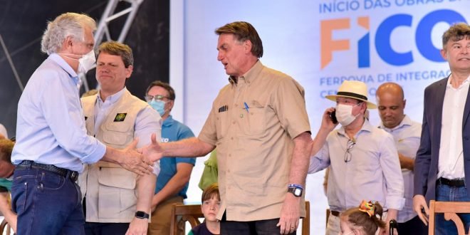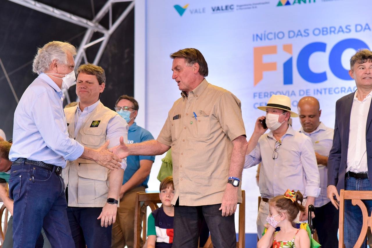 O governador Ronaldo Caiado, ao lado do presidente Jair Bolsonaro, participou, nesta sexta-feira (17/09), da solenidade de lançamento da Ferrovia de Integração Centro-Oeste (Fico), em Mara Rosa, no Norte goiano. O evento foi realizado no ponto de conexão com a Ferrovia Norte-Sul (FNS) e marcou o início da obra que tem um investimento total de R$ 2,7 bilhões. O projeto prevê a construção de 383 quilômetros de novos trilhos que irão até Água Boa, no Mato Grosso. Antes, no município de Alto Horizonte, o governador conheceu as operações da Mineração Maracá.