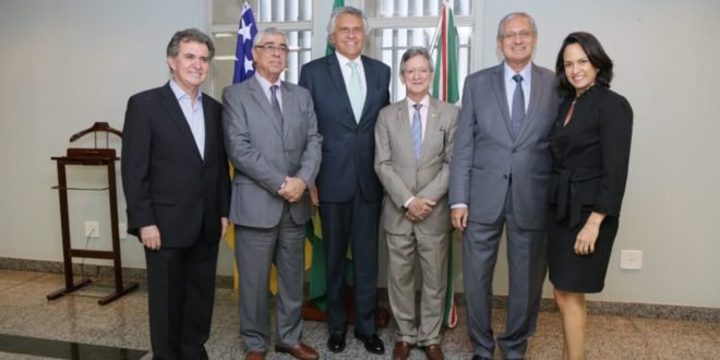 Participaram da reunião também os desembargadores Walter Carlos Lemes (Presidente eleito), Nicomedes Domingos (vice-presidente eleito) e Kisleu Dias (corregedor-geral de Justiça), e advogada e filha do governador, Anna Vitória Caiado.