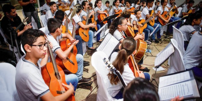 Os acordes das cordas da Camerata de Violões de Barro Alto (GO) ecoaram canções para uma apresentação especialmente dedicada à comemorar 12º aniversário da orquestra e a homenagear a Anglo American, que apoia o projeto desde a sua fundação. Cerca de 80 alunos, entre crianças e adolescentes, participam da orquestra, que apresentou no final do mês de junho composições consagradas. O show foi acompanhado por três músicos convidados: Leandro Gomes, no cavaco; José de Geus, conhecido como Zé do Choro, na clarineta; e Henry, no pandeiro.