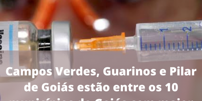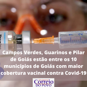 Entre os 10 municípios que se destacam com o avanço da imunização, estão Pilar de Goiás com (86,77%), Guarinos (88,74%) e Campos Verdes (84,78%), índice de imunização completa (duas doses ou dose única de suas populações.