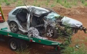 Uma mulher de 21 anos morreu após o carro em que ela estava com o companheiro, de 22, e o filho do casal, de cinco meses, sair da pista e bater em uma árvore na BR-153, entre Campinorte e Uruaçu, segundo a Polícia Rodoviária Federal (PRF). O acidente aconteceu na manhã deste domingo (12).