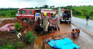 A Companhia Independente Bombeiro Militar de Uruaçu atende desde as 06hs 06min da manhã deste domingo, 11 de novembro, uma grave ocorrência de acidente de trânsito e de produtos perigosos envolvendo um veículo de grande porte e uma ambulância na BR-153, KM 253, próximo à São Luiz do Norte. A ambulância, pertencente ao município de Amaralina, estava ocupada por duas …