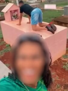 Na gravação, um deles fala que iria gravar algo ‘um tanto quanto interessante’. Pessoas que viram o vídeo ou estavam no cemitério se revoltaram e denunciaram o crime, em Barro Alto.
