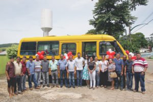 Sávio juntamente com a secretária de Educação, vice-prefeito João Grilo, vereador e secretários municipais, fizeram a entrega oficial do ônibus, da marca volkswagen, com capacidade para o transporte de 22 alunos.