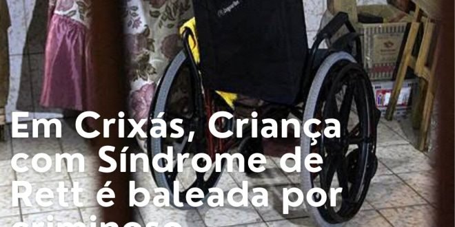 A violência no município de Crixás, localizado a 326 km da capital Goiânia, tem assustado os moradores da cidade e neste último sábado (18), uma criança com síndrome de Rett (Mutação genética rara que afeta o desenvolvimento do cérebro em meninas), que não se locomove e portanto usa cadeira de rodas, foi baleada dentro de casa no Setor Morada do Sol por J.L.B.J, vulgo “Pedrinha”, que foi alvejado após confronto com o Grupo de Patrulhamento Tático (GPT) e a 10° CRPM. A criança está em estado grave internada na UTI do HUGOL na capital Goiânia.