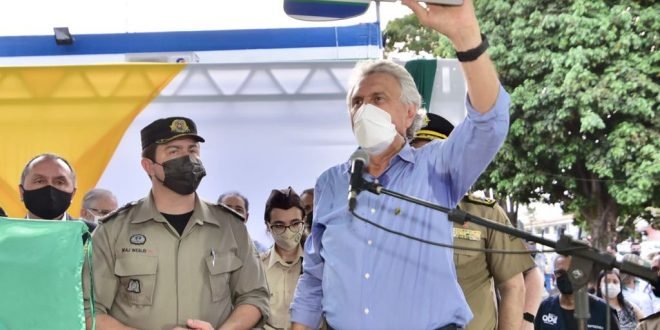 O governador Ronaldo Caiado participou, nesta quinta-feira (09/09), em Goiatuba, no Sul goiano, da entrega da reforma e da modernização das instalações do 29° Batalhão de Polícia Militar do Estado de Goiás (29° BPM-GO), conhecido como Batalhão Bandeirantes. No mesmo local, o chefe do Executivo estadual realizou a concessão de 535 computadores Chromebook para estudantes do município que integram a rede pública de educação e ainda assinou ordem de serviço para obras de reparos e ampliação do Colégio Estadual da Polícia Militar de Goiás – Unidade Elisio Joaquim de Vasconcelos. Somados, os investimentos ultrapassam a marca de R$ 1,9 milhão.