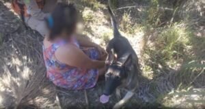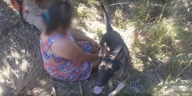 A mulher de 42 anos estava sumida há 4 dias e foi encontrada cansada, mas sem ferimentos. Cachorrinha Mera mostrou à corporação o caminho de onde estava