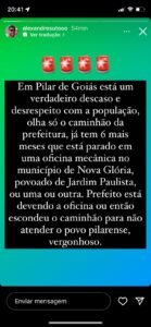 O município de Pilar de Goiás, está enfrentando um problema envolvendo o prefeito Tiagão. O vereador Alexandre Souto denunciou em suas redes sociais, no dia 16 de março, que um caminhão basculante pertencente à prefeitura foi abandonado pelo prefeito em uma oficina mecânica na cidade de Nova Glória há seis meses, com o motor fundido.