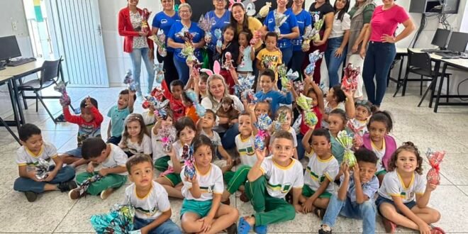 A entrega dos ovos de Páscoa, que teve início na segunda-feira (25), seguiu ao longo de toda semana, em todas as unidades escolares do município e nas pastas da gestão municipal.
