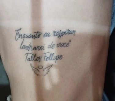 Segundo a polícia, após a morte do jovem, a namoradora fez uma tatuagem com nome dele e a frase: “Enquanto eu respirar, lembrarei de você. Talles Fellipe”. Além disso, há um desenho de auréola e asas de anjo.