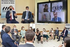 Participaram, por meio de videoconferência, os promotores Nathália Botelho Portugal (2ª PJ e coordenadora das PJs de Niquelândia), Victor Gonzaga Mariano (2ª PJ de Porangatu) e Vinicius Rodrigues Alves (PJ de Santa Terezinha de Goiás). (Texto: Pedro Palazzo – Foto: João Sérgio/Assessoria de Comunicação Social do MP-GO)