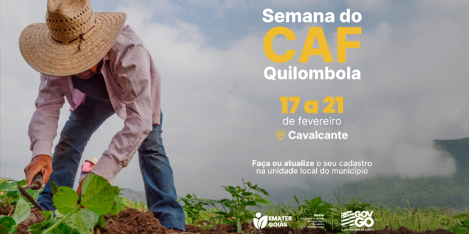 A Emater Goiás promoverá entre os dias 17 e 21 de fevereiro a Semana do CAF Quilombola, em Cavalcante. Neste período, os técnicos da unidade local do município estarão disponíveis exclusivamente para atender agricultores de comunidades quilombolas para a emissão do documento.