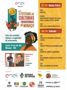 A cidade de Minaçu recebe, nesta sexta-feira (7) e no sábado (8), o primeiro Festival de Culturas Tradicionais de Minaçu. O evento tem patrocínio da Enel Distribuição Goiás por meio do Programa Goyazes de Incentivo à Cultura – Lei Goyazes, da Secretaria Estadual de Cultura.
