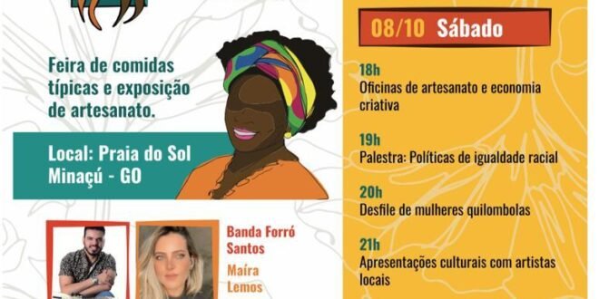 Com duração de dois dias, o evento tem sua abertura às 20h, na sexta (7), com apresentações culturais de artistas locais e grupos de folia regional. A cantora Maíra Lemos faz um show às 23h. Já no sábado (8) a programação começa às 18h com oficinas de artesanato e economia criativa, às 19h acontece uma palestra de políticas de igualdade racial, às 20h desfile de mulheres quilombolas, às 21h apresentações culturais com artistas locais e a noite termina com um show da Banda Forró Santos.
