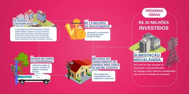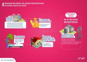 O diretor-presidente da Enel Distribuição Goiás, José Luis Salas, ressalta que a realização de mutirões de ações preventivas como esse estão trazendo melhorias para o fornecimento de energia de milhares de clientes goianos, entre residências, propriedades rurais, indústrias e comércios. “Os mutirões são um complemento às manutenções rotineiras já realizadas pela empresa. Somente nesta iniciativa, estamos investindo R$ 1,9 milhão, trazendo melhorias no serviço oferecido para cerca de 540 mil clientes e reforçando o compromisso que a companhia tem com todo o Estado de Goiás”, destaca.