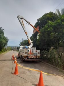 Adicionalmente, a força tarefa está atuando em manutenção em equipamentos, incluindo a correção de defeitos, troca de equipamentos como isoladores e chaves, limpeza de faixas de servidão, que também evitam que a vegetação entre em contato com a rede, além de inspeção detalhada em toda a rede do município.
