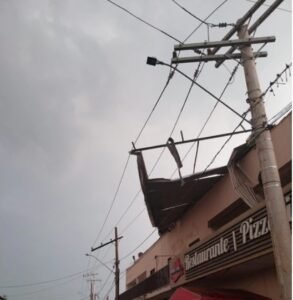 Com o aumento da intensidade das chuvas no estado, a Equatorial Goiás reforça o alerta sobre os riscos e as consequências dos objetos que caem sobre a rede elétrica. Ventos fortes e tempestades podem fazer com que telhas, lonas e até estruturas de fachadas de lojas sejam arrastadas, caindo sobre os cabos de energia e comprometendo a estabilidade da rede de distribuição. Esse tipo de ocorrência, além de interromper o fornecimento de energia, representa um risco significativo para a segurança da população.