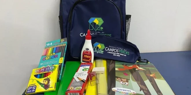 Os estudantes da rede municipal de ensino receberão kits de matérias escolares e mochila da Prefeitura de Campos Verdes. Cada kit é composto por cadernos, lápis de cor, cola, lápis, régua, estojo, giz de cera, apontador e borracha.
