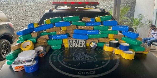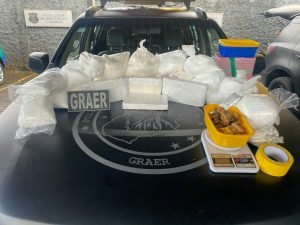 Já em Anápolis, equipes do Comando de Policiamento Especializado (CPE) apreenderam 34 quilos de entorpecentes. Os militares faziam rondas no município, quando visualizaram um indivíduo, em atitude suspeita. Após diversas diligências, foram apreendidas peças de maconha, crack e cocaína, além de insumos, duas balanças de precisão e caderno com anotações das vendas. Com o homem também foram recuperados R$ 100 mil em mercadorias ilícitas. A suspeita é de que os produtos fossem provenientes de roubo/furto de cargas. Ao final, o indivíduo foi conduzido à Central de Flagrantes da cidade.
