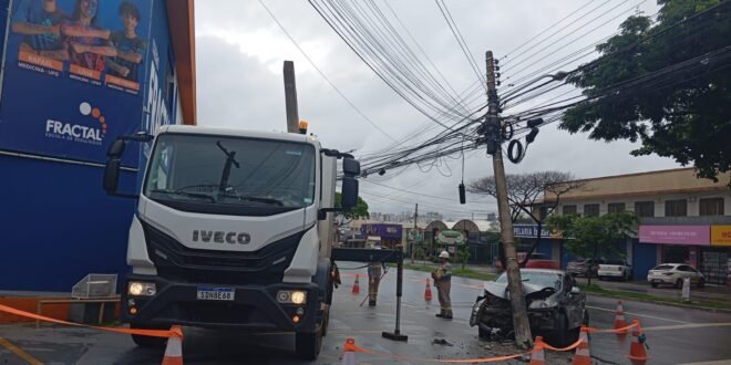 Em caso de ocorrências com postes da rede elétrica, a Equatorial Goiás deve ser comunicada imediatamente para realizar os desligamentos emergenciais, além da troca da estrutura.