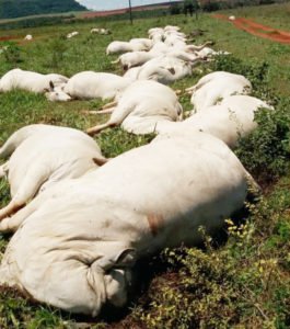 O pecuarista Emerson Cabral, de 47 anos, denuncia que 34 vacas morreram após a queda de um fio de energia na fazenda de seu pai em Caçu, no sudoeste goiano. O homem conta que o prejuízo chega a cerca de R$ 170 mil.