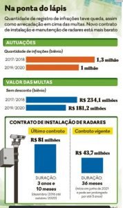 Além da economia nos gastos com o serviço, a Goinfra também reduziu o número de autuações aplicadas e o valor pago por condutores que cometem infrações, desde 2019. Na comparação entre os biênios 2017/2018 e 2019/2020, a agência baixou em 284 mil a quantidade de autos emitidos. Em valores, isso representou R$ 52,8 milhões a menos desembolsados pelo goianos com o pagamento de multas. Uma das iniciativas responsáveis pelo resultado foi a retirada dos radares móveis ainda no início da atual gestão estadual.