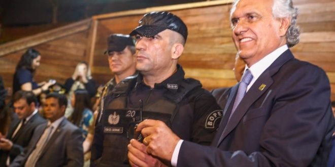 O governador fez a entrega simbólica das chaves de uma nova viatura blindada à corporação e anunciou que as forças de segurança do Estado serão homenageadas pelo Governo do Estado com um banner gigante que será fixado nos dez andares do Palácio Pedro Ludovico Teixeira ainda neste mês.