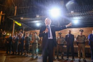 Sob chuva, o pelotão de veteranos do Batalhão de Operações Especiais da Polícia Militar de Goiás – BOPE se mantinha em formação para receber as homenagens prestadas por seus 30 anos de atividades. Em reconhecimento aos serviços prestados pela unidade, o governador Ronaldo Caiado fez questão de se posicionar em frente aos veteranos, sem se importar com o mau tempo, para prestar sua homenagem e reafirmar sua satisfação pelo trabalho desenvolvido pelas forças policiais do Estado. “Cada vez mais eu recebo os cumprimentos pela escola que vocês construíram, que engrandece a polícia do Estado de Goiás. Aquilo que vocês iniciaram há anos continua vibrante e respeitado no cenário local e nacional”.