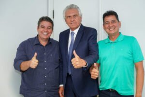 O governador Ronaldo Caiado recebeu na tarde da última terça-feira (09), o presidente do União Brasil de Uruaçu, Oziris Ribeiro, juntamente com o prefeito Valmir Pedro. A audiência teve duração de quase uma hora. Na pauta foram discutidos os investimentos do Governo de Goiás em Uruaçu.