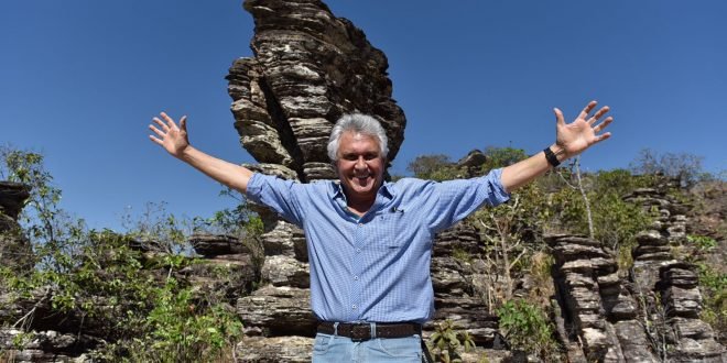 “Vamos devolvê-la ao povo goiano, para que as pessoas apreciem essa beleza natural”, diz governador Ronaldo Caiado ao participar de expedição a pé com equipes da Universidade Federal de Goiás e especialistas, no Parque Estadual da Serra Dourada, em Mossâmedes. Rocha foi tombada em 1965 por adolescentes com uso de macaco hidráulico