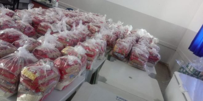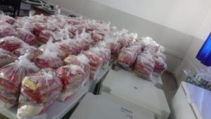 Com a suspensão das aulas presenciais devido a Covid-19, a merenda escolar foi substituída pela entrega de alimentos aos alunos. Os kits são compostos por 2kg de arroz (tipo 1), 1 kg de feijão (tipo 1), 1 molho de tomate de 340 g, 1 kg de macarrão e 3 kg de frutas, verduras e legumes variados.
