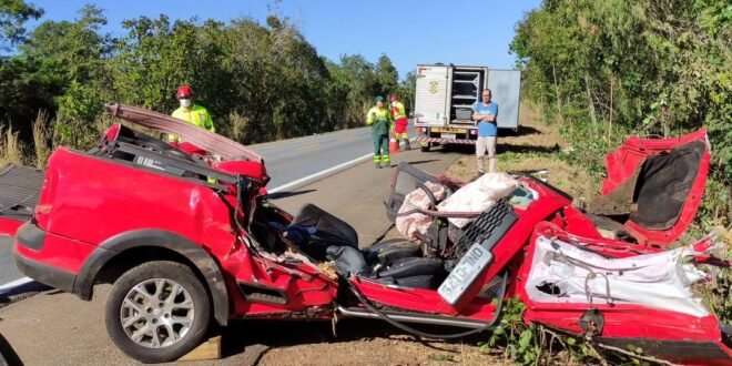 Um trágico acidente ocorreu na manhã dessa terça-feira (27/06), na BR-153, próximo à cidade de Porangatu, deixando um saldo de duas vítimas fatais. Uma Saveiro vermelha, que seguia viagem de Goiânia com destino ao Tocantins, saiu da pista e colidiu violentamente contra árvores nas margens da rodovia.